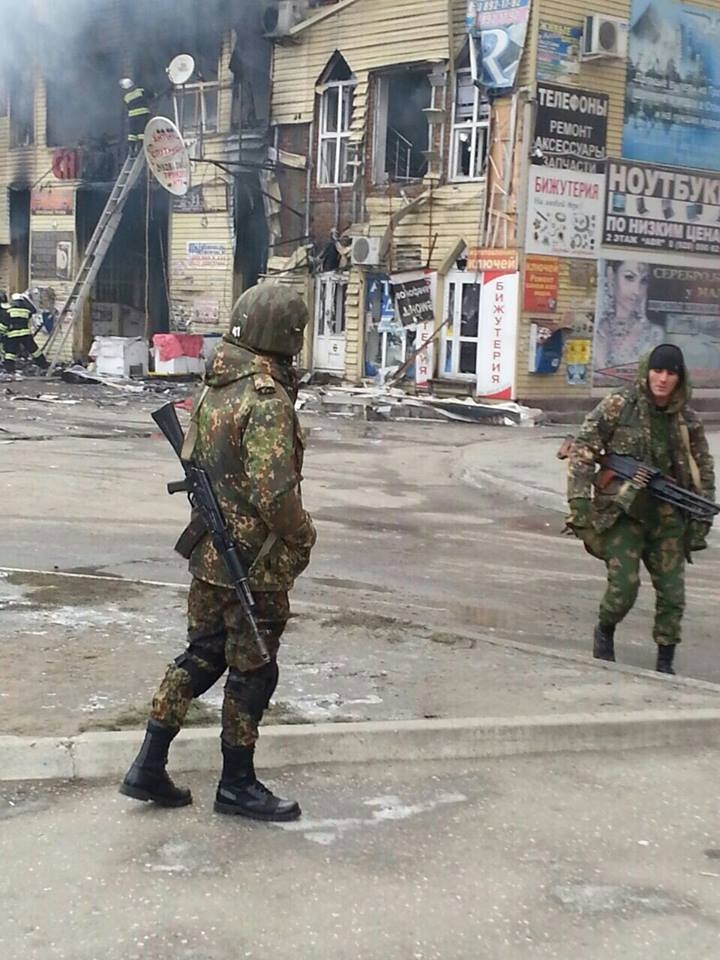Kavkaztsentri video pimedas - tänaval - kus vene silovikud - miski põleb. Kuskil 38 sekundist - näidatakse millegagi üle majade tõsisemat tuleandmist üle majade.