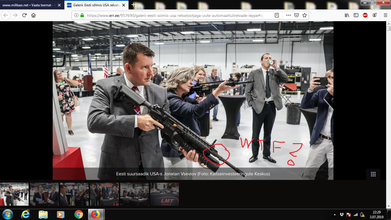 Jebus, sa näed ja sa ei mürista.Leo kirjutas:Kiidan saadiku eeskujulikku päästikusõrme, sel proual, kes tal kõrval seisab, on näpp väga vales kohas. Hea, et lõpuks lepinguni jõuti, eks siis aasta jooksul skautidelt kuuleb, kuidas need relvad päriselt vastu peavad jalaväelaste käes. Ma eeldan, et skaudis on igale jalaväelasele vähemalt 2 automaati varutud, et siis lagunemise korral kiiresti uue saaks, kuni vana remondis?