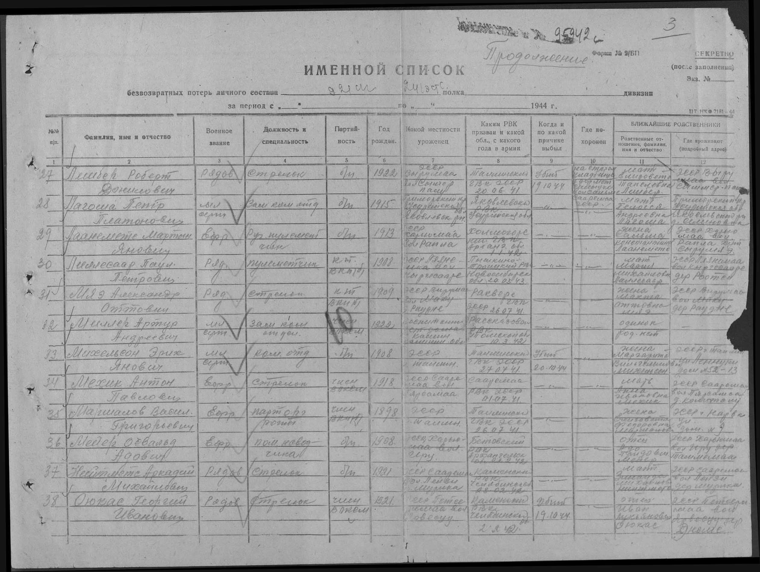 (abikaasa nim. Luise) 725. laskurpolk Vanem-seersant Jaoülem 1910 Viljandimaa 07.01.1942 04.10.1944 Muhu saar, Viira küla