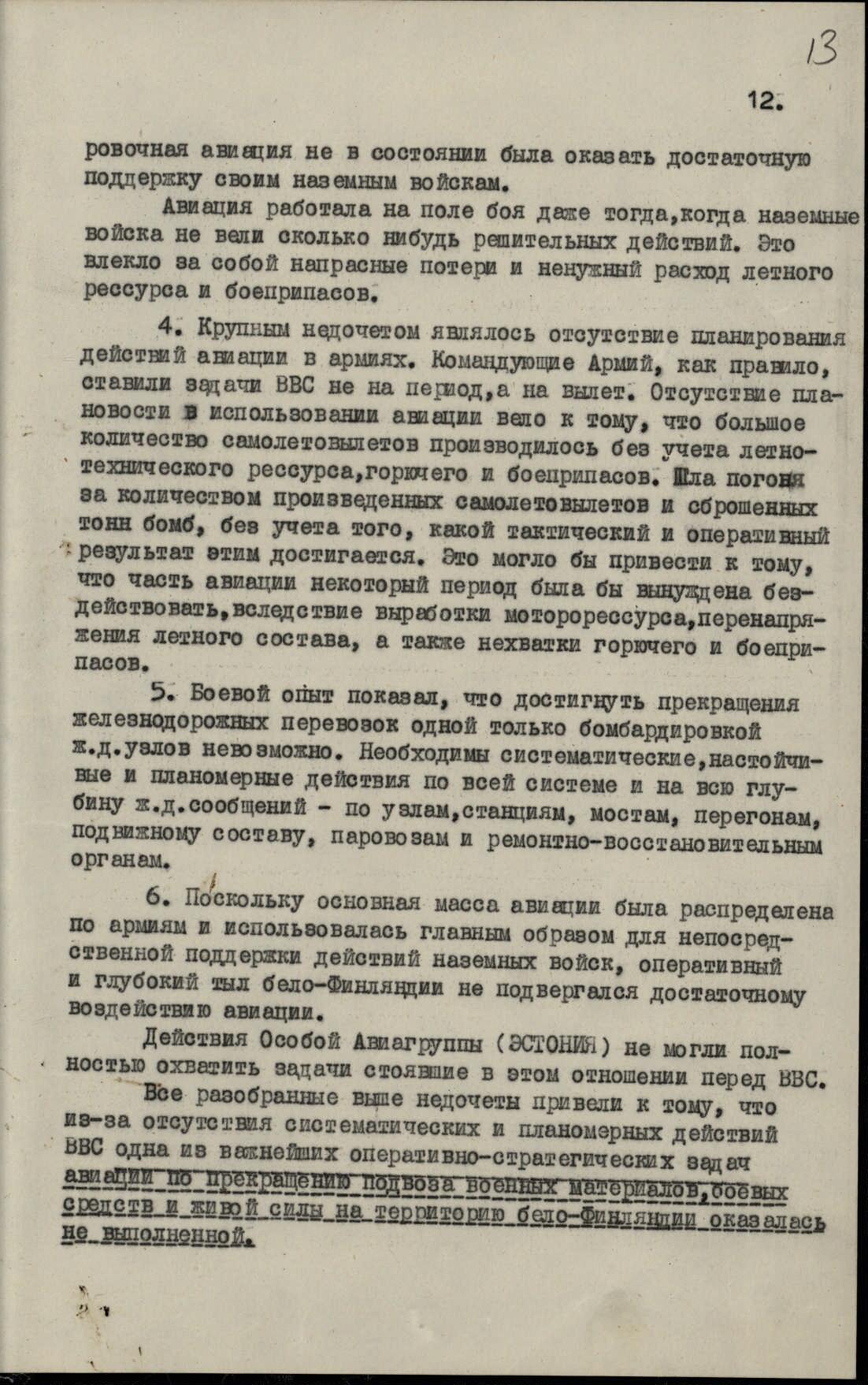 Доклад командования ВВС Красной армии о боевой деятельности советских ВВС в войне с Финляндией, направленный начальнику Генштаба Красной армии Б. М. Шапошникову.