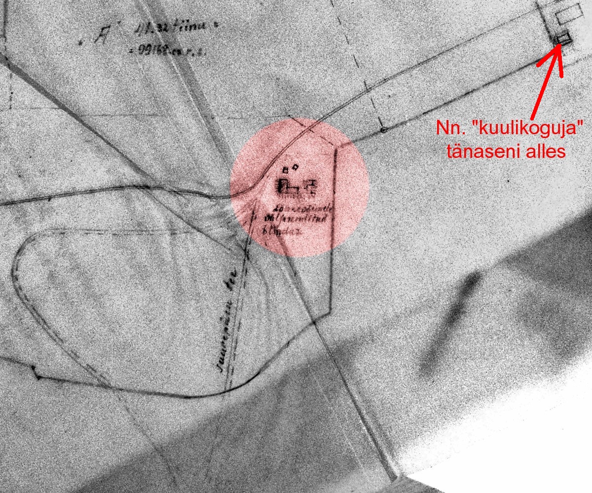 Kuulikogujast, mis jäi aia sisse, saabki antud objektini ca 500-600 meetrit.