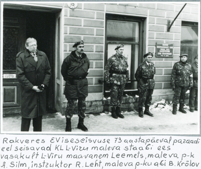 Fucsi postitatud pilt Viru maleva esiselt Rakveres tekitab minul (väikseid) kahtluseid kuupäeva osas. Kui need ei ole nõuka vormid, siis see ei saa olla 1991. Esimesed meie oma vormid sai tehtud ikka 1992. Ja ma ei mäleta, et nõuka ajal oleks laiguline barett olnud. Seega - pakun 1992, või siis veelgi julgemalt lausa 1993. Ja võtan vapralt vastu kõik ümberlükkamised (venekeelne silt? Viitab ikkagi 1991).