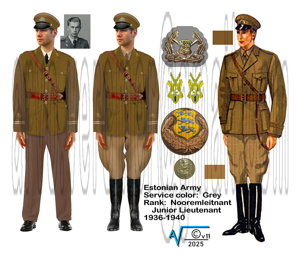Vasaku ja keskmise härra õla- ja kõhurihmade laius peaks OK olema. Ma kasutasin üht originaalfotot sõduri kuue joonistamiel oma illustratsioonides. Väga võimalik, et parempoolse härra keharihmad on pisut kitsamad, sest nii nad 70-aastat tagsi joonistati.