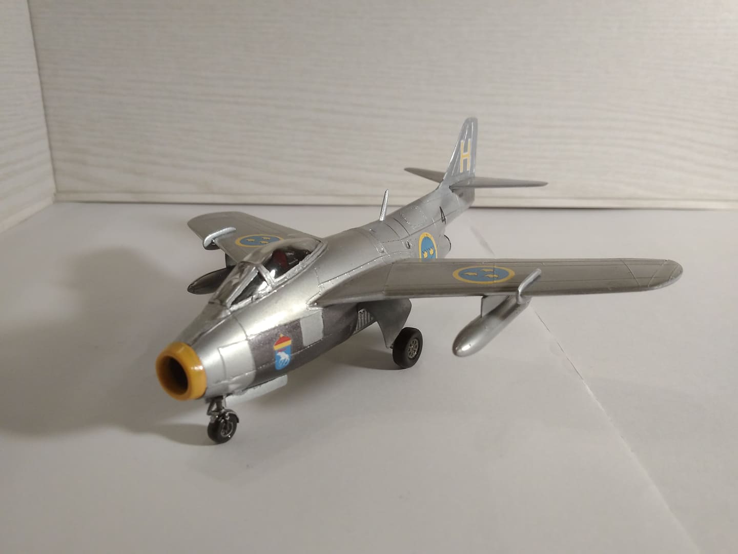 Muidu sujus kõik hästi, AGA... Raiped on teinud pealmised dekaalid sama värvi mis lennuki värvitoon, seega polegi näha et tegemist on muidu Rootsi õhujõududega.