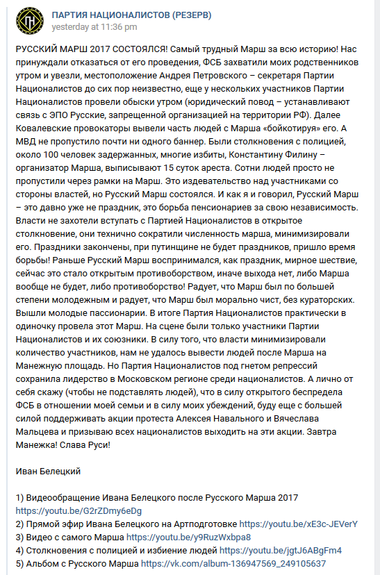 Eilse Vene marsi kohta postitus VK-s