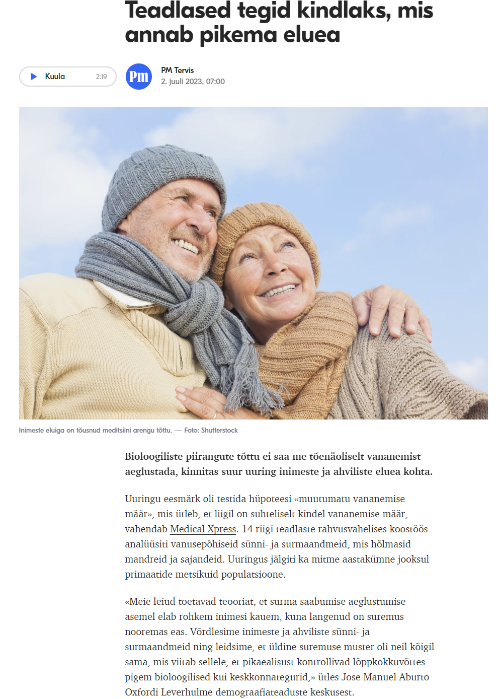 Millise pealkirja oleks pidanud ajakirjanik panema, kui rohkem inimesi elab aasta-paari asemel näiteks 70 aastat?Meie leiud toetavad teooriat, et surma saabumise aeglustumise asemel elab rohkem inimesi kauem, kuna langenud on suremus nooremas eas.