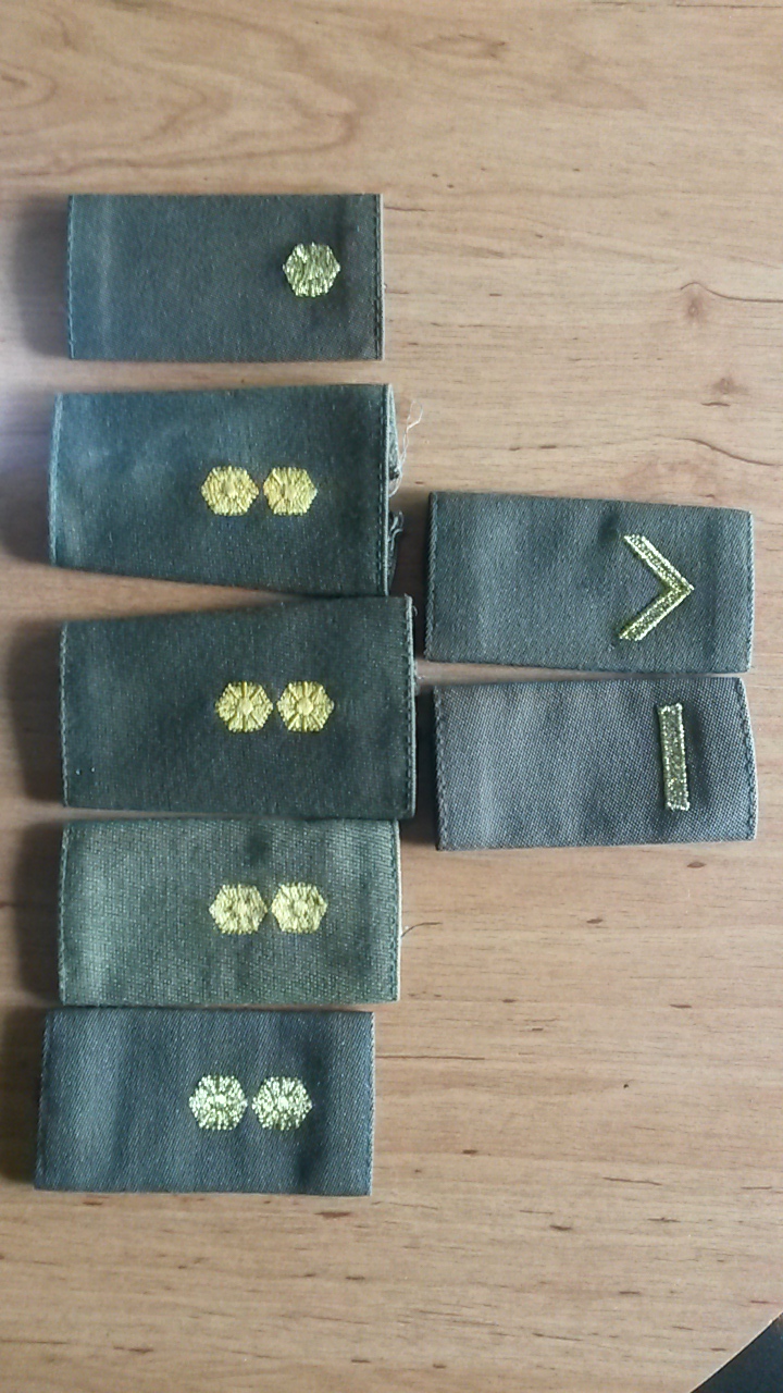 Vahetuseks mõned auastmetunnused. Ülemised tavavormi nooremleitnandi tunnused on pärit mantlilt - sellest ka laiemad, kuid paraku osutusid need lahtiharutatuks mitte omataolisteks. Vabandused ka nigela kvaliteedi pärast. Pean leppima telefoni kaameraga.