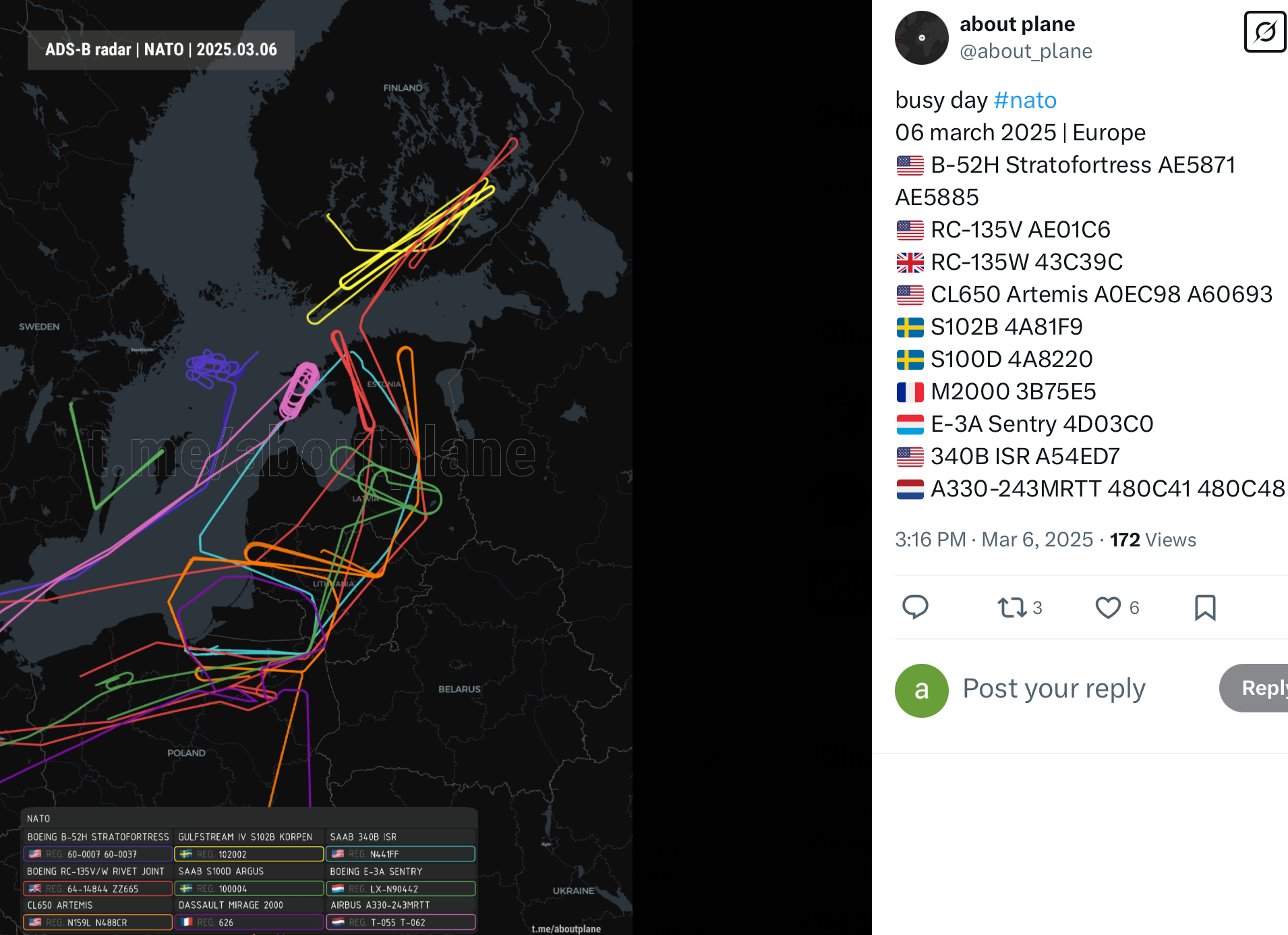 https://x.com/sentdefender/status/1897730566096642125According to a release from the Finnish Air Force, two U.S. Air Force (USAF) B-52H strategic bombers conducted joint exercises with Finnish Air Force F/A-18 Hornet fighter jets and dropped Joint Direct Attack Munitions (JDAM) on targets at the Rovajärvi firing range in Finland. This marks the second B-52H flight with partner nation forces this week
