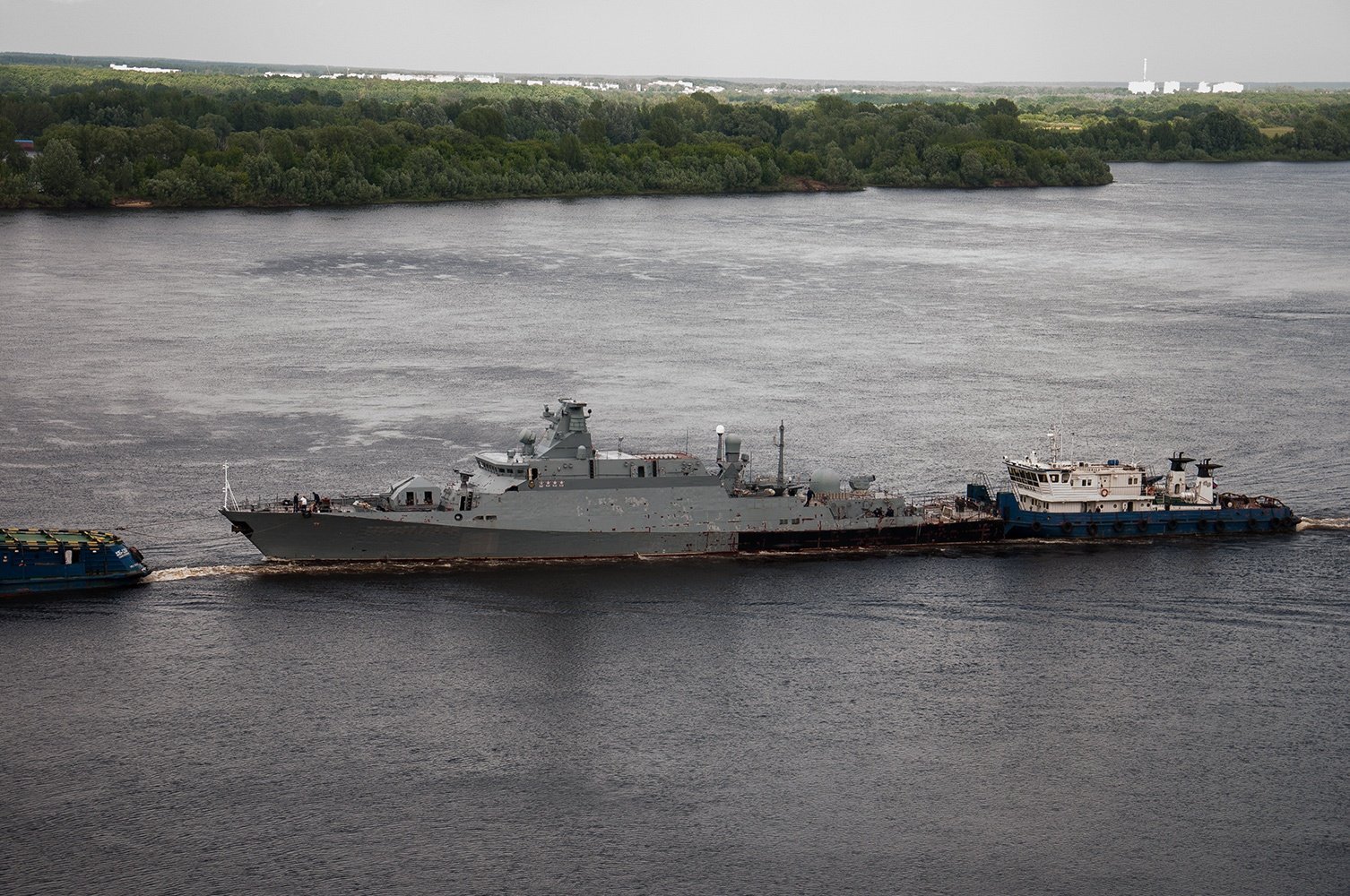 Piltidel on näha, kuidas Velikiy Ustyug korvett Aasovi merest Kaspia merele remondiks ümber paigutab. Ilmselt sai sõjalaev märtsis BM-21 Grad süsteemi suurtükitule tõttu tõsiselt kannatada.