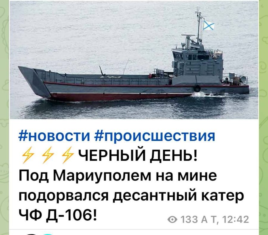 Säutsuvad, et Vene maabumisalus 1176 "Shark" CF-106 projektist olla Mariupoli all miini ots sõites plahvatanud.
