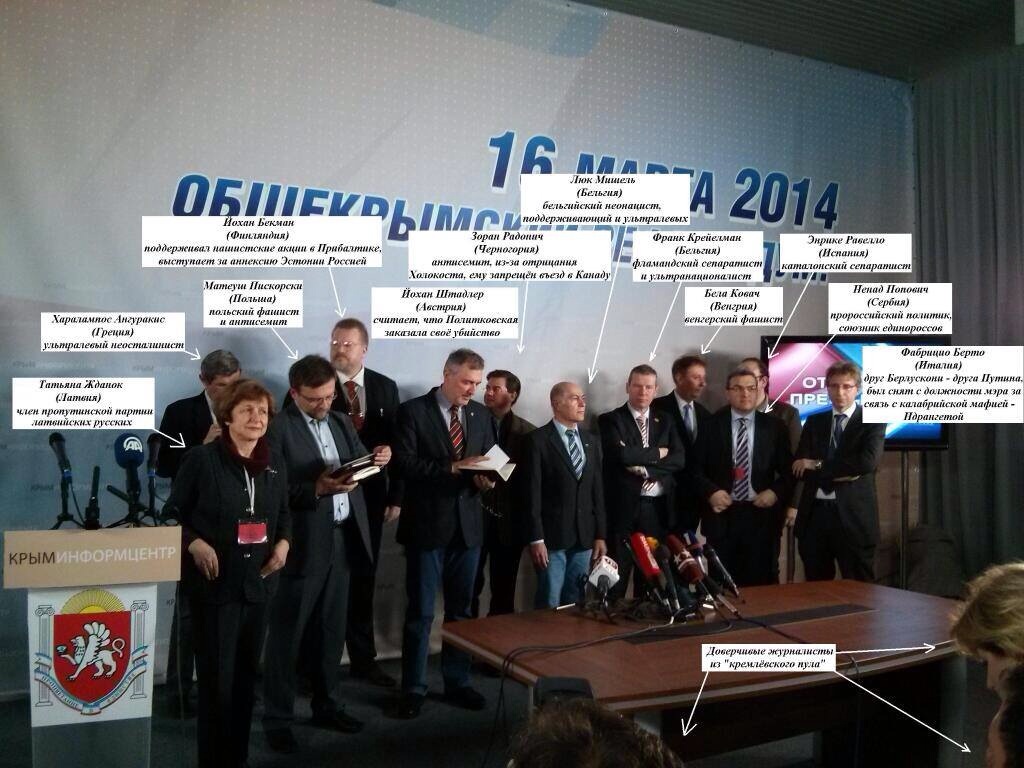 Krimmi referendumist saab varsti juba nädal, kuid uued sündmused tahavad selle enda alla matta. Panen siia mälestuseks üles "auväärsete" välisvaatlejate grupifoto, keda kasutati rahva hullutamiseks.