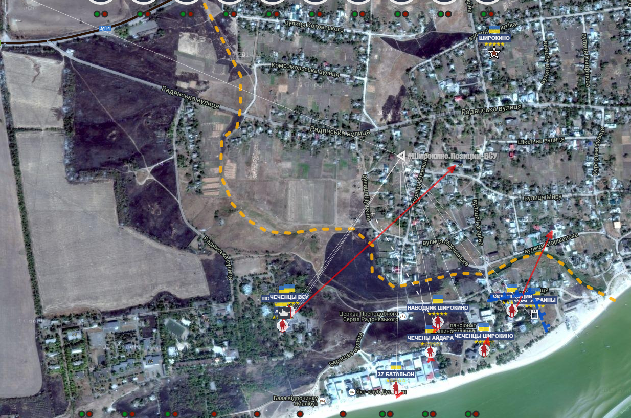Ukraina positsioonid Širokinos enne eilset mardikate väljatõmbumist.