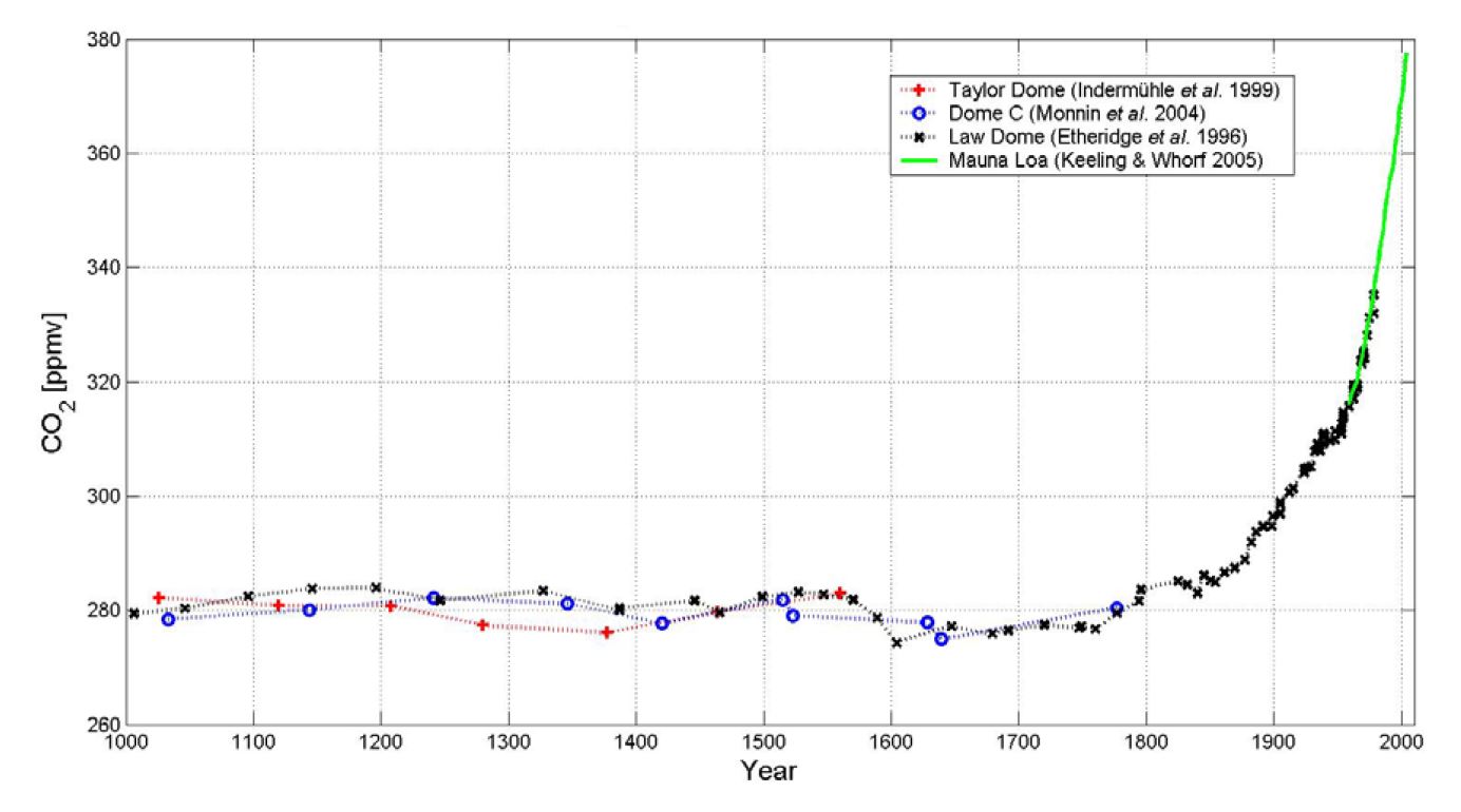 Aga midagi nendes andmetes ikka ei mätsi. Et kui inimkond kasvad Ca 2M pealt 300M peale nii 8000 aastaga ja põhjustas oma eeltööstusliku tegevusega CO2 tasemete tõusu, siis miskipärast aastatel 1000 - 1800, mil inimkond kasvab ennast ca 300M > 1000M -ini siis jookseb see hinnanguline CO2 sisaldus atmosfääris üsna horisontaalselt....