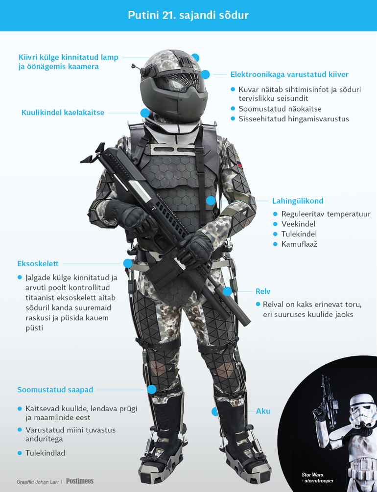 Mehhaanilise osaga saaks venelased isegi hakkama. Elektrooniline osa on neile praeguse olemasoleva tehnoloogia taset arvestades kättesaamatu. Samahästi oleks võinud traditsioonilise relva asemel anda "tuleviku-punaarmeelasele" magnetilise lineaarkiirendi põhimõtet kasutava "toru"..Puurija kirjutas: https://www.rt.com/news/394745-russian- ... oskeleton/