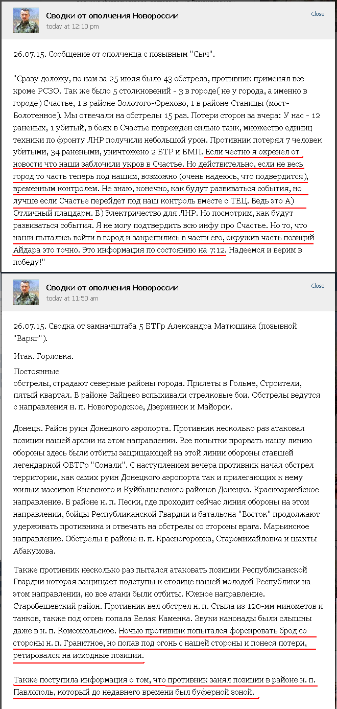 Azovi ja Aidari üksused oma kohtadelt ei lahkunud, kuigi oli selleteemalisi uudiseid. Azovi üksused jäid Shirokine piirkonda ja Aidari omad Luhanski piirkonda. Kuna näha on tulevahetuse ägenemist siis on lahingukogemustega vabatahtlike üksuste rindelt eemaldamine suisa kuritahtlik. Meestele on küll puhkust ja varustust juurde vaja, kuid kogenematud regulaarid on kindlasti nõrgem üksus, kui lahingukogemustega mehed.