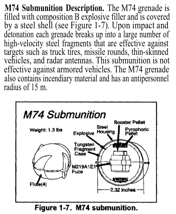 - Block I, mis lendab max 165 km, kuid sisaldab 950 "granaati" M74.
