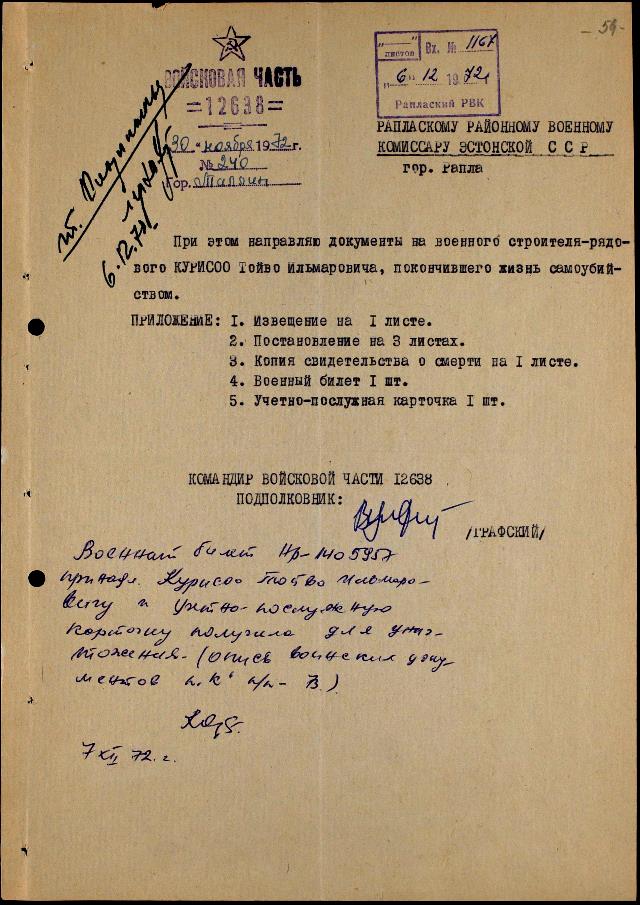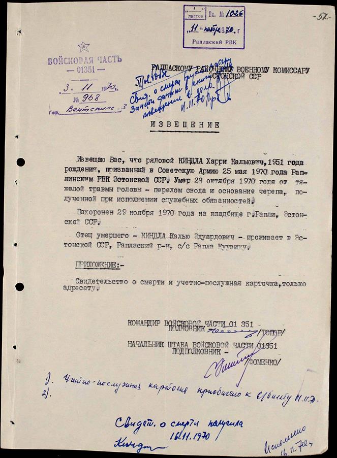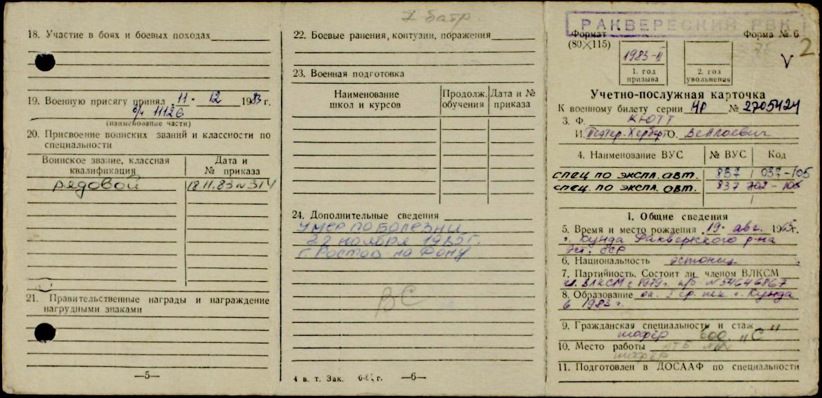Ja siis on 80-ndaid ja 90-ndaid puudutavalt üks segane sõjakomissariaadi dokument.
