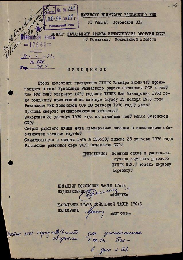 1966a sündinuna ei saa nagu jaanuaris 1984a "hukkuda NA-s" kuna selleks oleks pidanud 1983a sügisel NA-sse minema, kuid 1983 oli isik veel 17a vana.