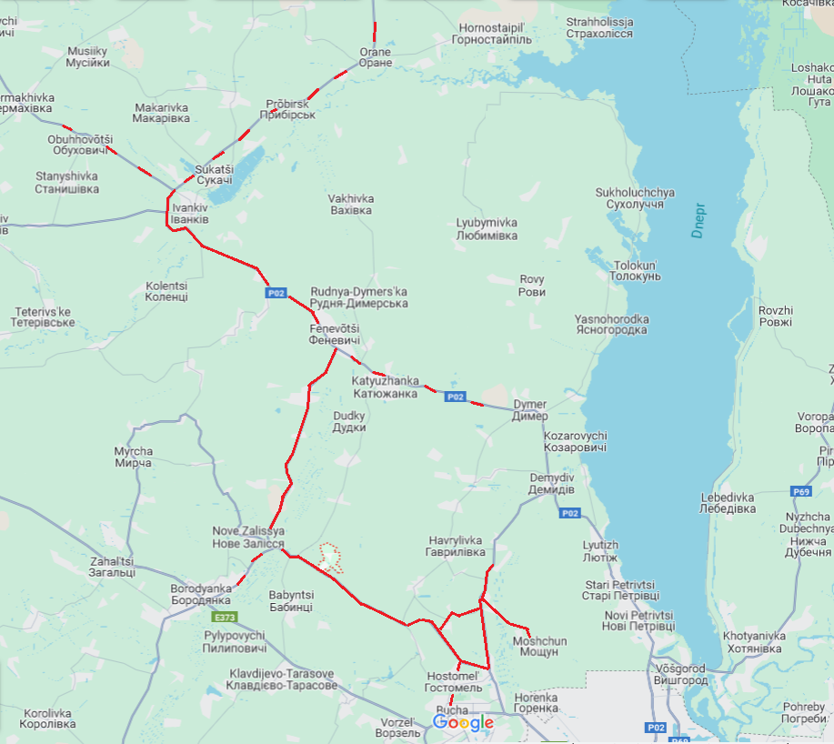 Kohe lasi UKR pool (peamiselt 72. brigaad) õhku Kiievi suunal olevad sillad (Tšernobõli, Ivankovi, Dymeri, Demidovi, Gostomeli ja Irpeni lähedal).