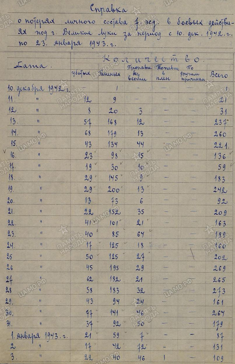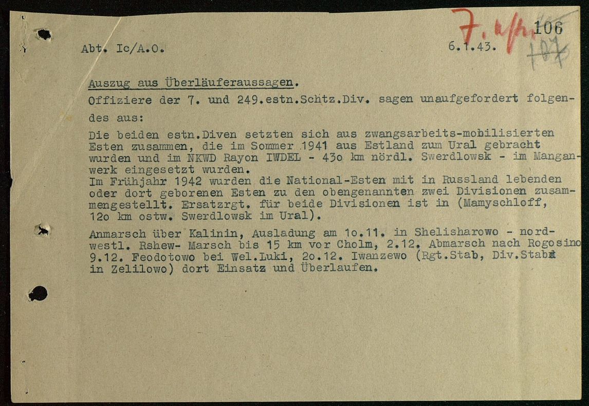 Pigem midagi muud. Ca 03.01.43 järel oli 7ELD ülejooksikute arv minimalne (mõnikümmend meest) ja nende enamuse kohta võib vast tõesti öelda, et langesid vangi eri asjaoludel. Mõned erandid va. Sel ajal keegi enam ei uskunud, et Garnison vabastatakse sakslaste poolt. Kokku jooksis 7ELD -st garnisoni üle 300 mehe. Umbes 12 - 13.01 paiku aga sattusid uuesti Punaarmee kätte esimesed suuremad ülejooksikute grupid, kes end keldrites ja punkrites varjasid. Võib olla on kuidagi sellega seotud.