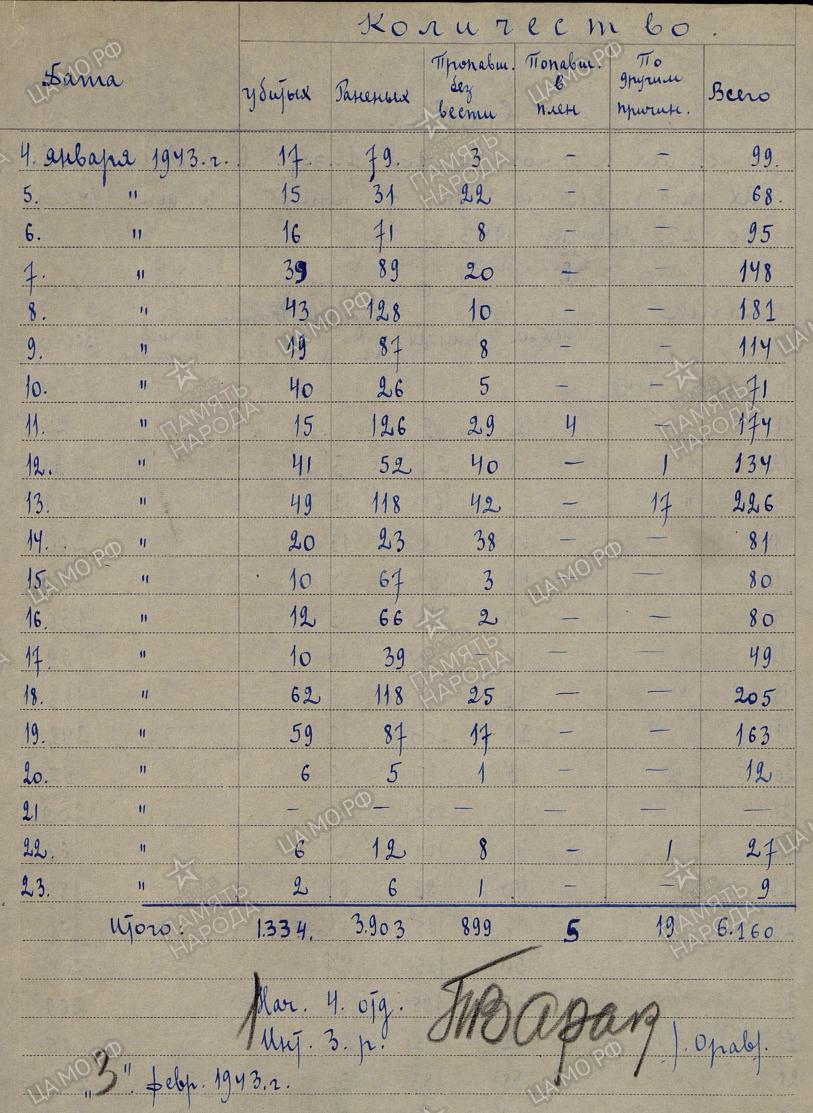 13.jaanuari kohta on on selline opsvodka (teadmata kadunute arv on esialgu 59 = 42 + 17, haavatuid paistab ka 2 vähem):