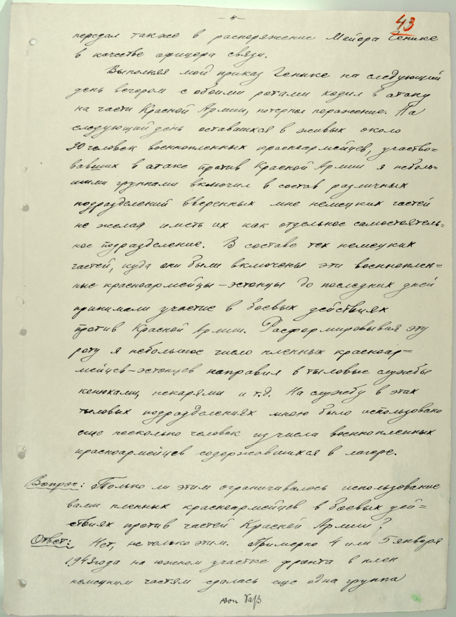 Протокол допроса военнопленного Э.Г. фон Засса, генерал-майора, командира 277-го пехотного полка 83-й пехотной дивизии, использовании советских военнопленных в боевых действиях в районе г. Великие Луки