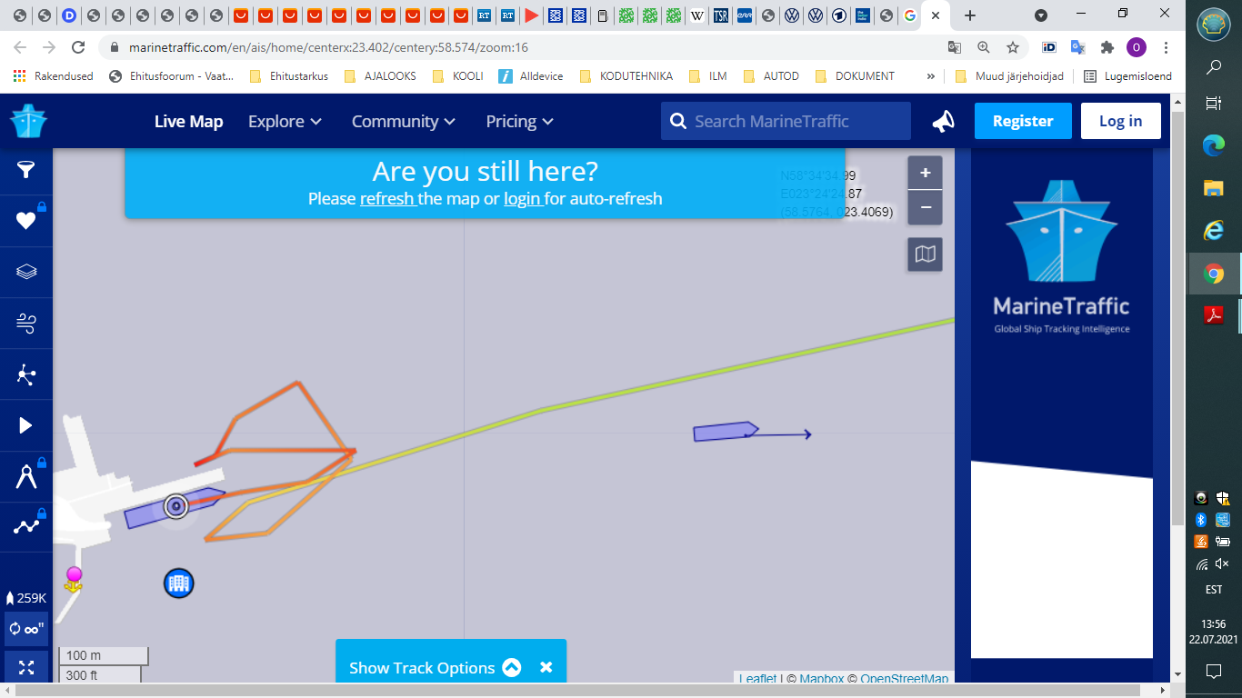Kirs kirjutas:... Olavi, ma ei saa nagu pihta, kui pool kilti enne sildumist järsult vasakule kursilt kaldus, siis kuidas juhitamatu laev ikkagi sildumisrambile pea kümnesse lajatas? Mismõttes kurviga vastu kaid? Videos tuleb suht otse ju. Ärge uskuge mingit marineträffiku asja, sinu kuvatõmmiselt ju näitab üldse nagu poleks laev sildumisrambile juurde jõudnudki.