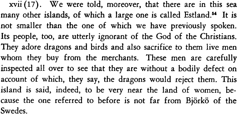 Nüüd jätkas Adam saarte kirjeldamisega: Taani saared, siis Holm (Holmus, Gotland), (mida ta ei hinda kaugeks saareks) jääb Scania ja Göta lahedale.