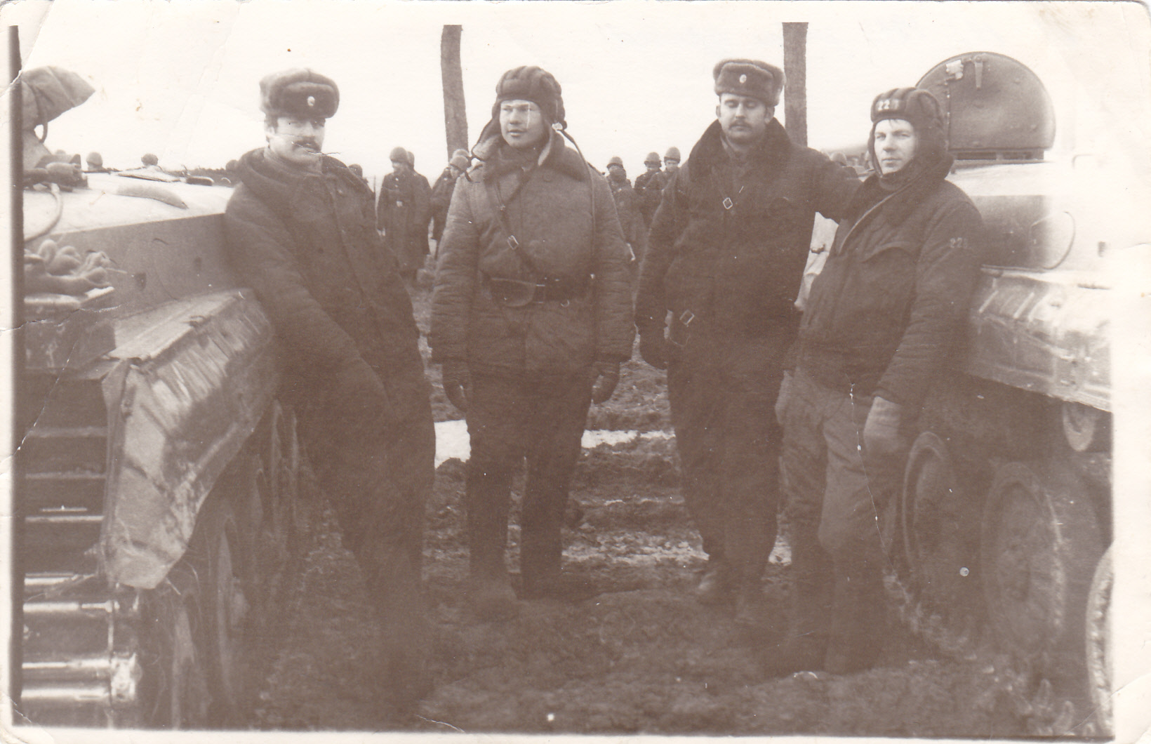 Mõlemad pildid ilmselt Kaliningradis tehtud. Esimese pildi taga kiri: "16.-19. I 1973, polgu õppused" Pildil eestlased. Teise pildi taga kiri: "25. august 1972. Enne diviisi õppust. Kutšer, S. (komandör), Matskevitš (mehaanik)." Furaškaga tüüp nende taga eestlane.