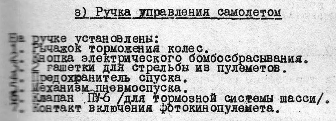 Et siis erinevalt Airacobrast, kus juhtkang oli lihtsalt üks pulk ühe päästikuga - MiG-3 juhtkangile oli toodud terve hunnik erinevaid nuppe, sealhulgas ka kaks päästikut. Siin pole jälle kirjas, mida üks või teine päästik päästis (ja see manuaal on tegelikult 5-kuulipildujalise MiG-3 oma). Ikkagi pakuks, et Pokrõškin tegelikult "moderniseeris" MiG-3 päästikusüsteemi, mitte Airacobra oma...