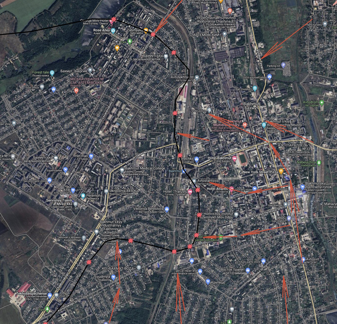 Batašvili kaardi järgi on Bahmutis raudteeäärne kompleks koos domineeriva kõrghoonega (mis iganes see ka poleks) langenud. Kogu Bahmuti kesklinn on venelaste valduses.