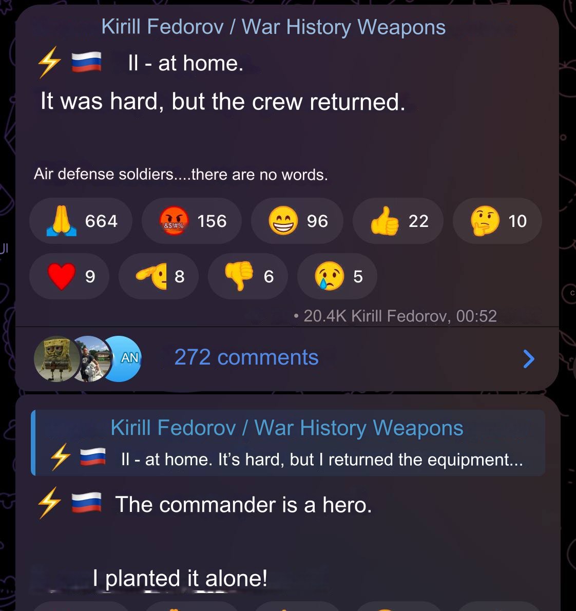 Beriev A-50 AWACS lasti alla Kyrylivka piirkonnas, et SU-34 kaotustest oli ikka vähe parasiitidel ning arvasid, et A-50 on nähtamatu sääsk taevas. Il-22M11 suutis kuidagi maanduda (sõnastus on veider, aga võisin ka valesti aru saada).