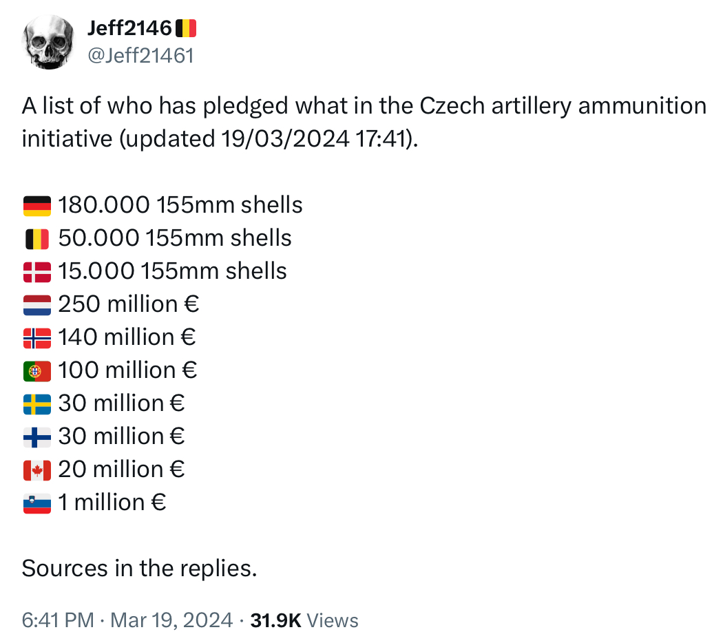 https://twitter.com/visegrad24/status/1 ... 6461620650Belgium has announced a new USD 450 million military aid package for Ukraine