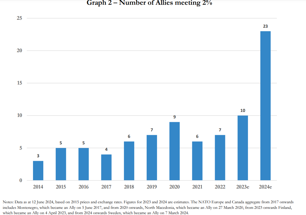 Kaitsekulude kasvust kõneldes Trumpi ametiaja lõpuks täitis Nato 2% nõuet 9 riiki, siis 2024 aastaks prognoositakse, et 23 riigi kaitsekulud ületavad 2% SKT. Ukraina sõja mõju, mitte mõne geniaalsus.