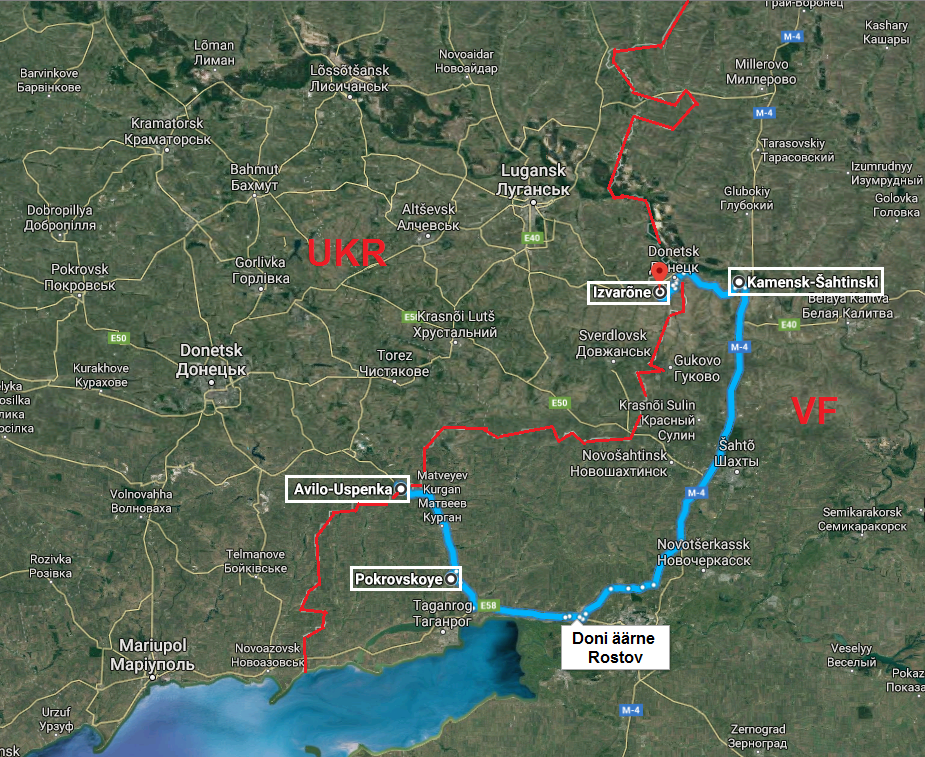 Pokrovskoe - Avilo-Uspenka (Novoazovski piiripunkt) jäävad otse Donetski suunale ja Kamenski-Šahtinsk - VF Donetsk/UKR Izvarõne ("Izvarino" piiripunkt) jäävad otse Luganski suunale.