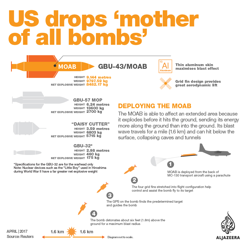 Muig, õnnestus ka nädalavahetusel lugeda (vist oli Postimehe paberväljaanne) ka konkurentide arvamust pommist. Venelaste arvates oli see "ebaefektiivne ja mõttetu", samas tõsteti kisa, et USA kasutas seda lihtsalt uute relvasüsteemide testimiseks (ja mida venelased Süürias ise teevad?