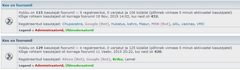 Kasutajad foorumit lugemas: Registreeritud kasutajaid pole ja 2 külalist