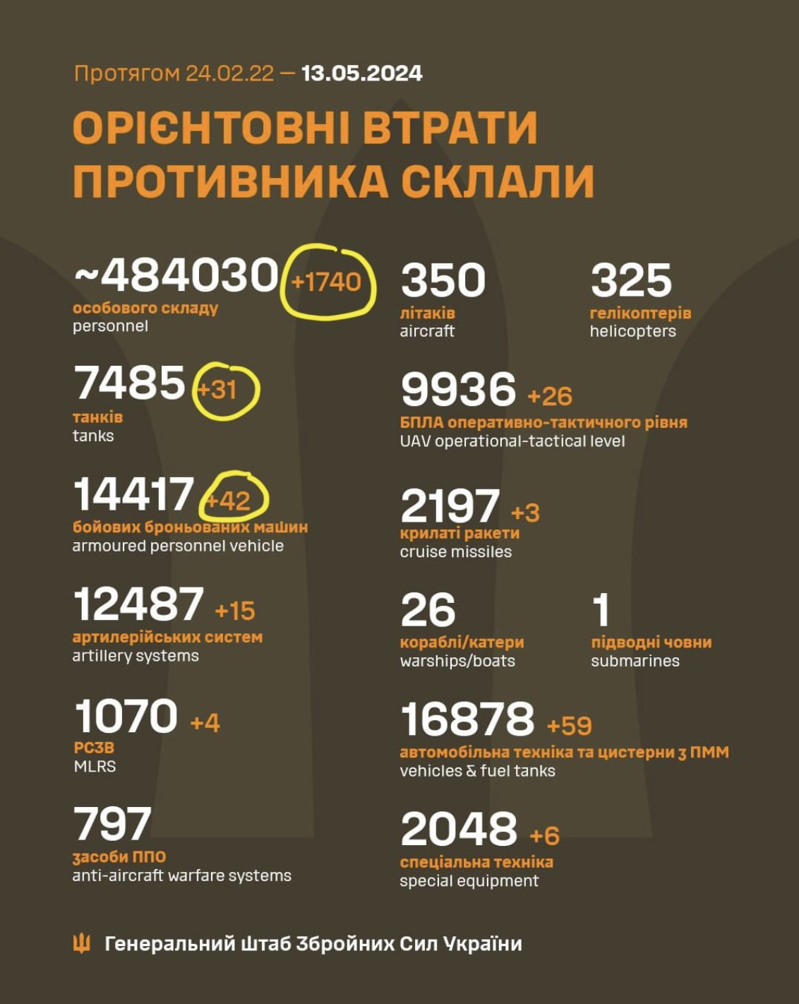 Ei suuda ka venelased pikalt selliseid kaotusnumbreid sisse võtta. Isegi kui pole 100% täpne, siis 1500-1700 mehe ja 30 tanki hukkasaamine päevas ei ole kuidagi jätkusuutlik. Täna on venelased all-in ründel, kuid märkimisväärset tulemust pole.