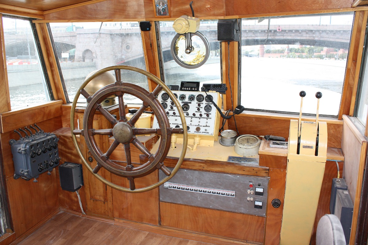 Kammisin vene saite ja leidsin ühe Moskvas seisva saksa OM-i roolikambri. Mulle tundub, et rooliratas ja vineerplaadid võivad olla originaalid. Eeldan, et "Lermontovil" võis olla midagi samas stiilis. Niipalju, kui akendest omal ajal väljapoole paistis, domineerisid pruunikad toonid.