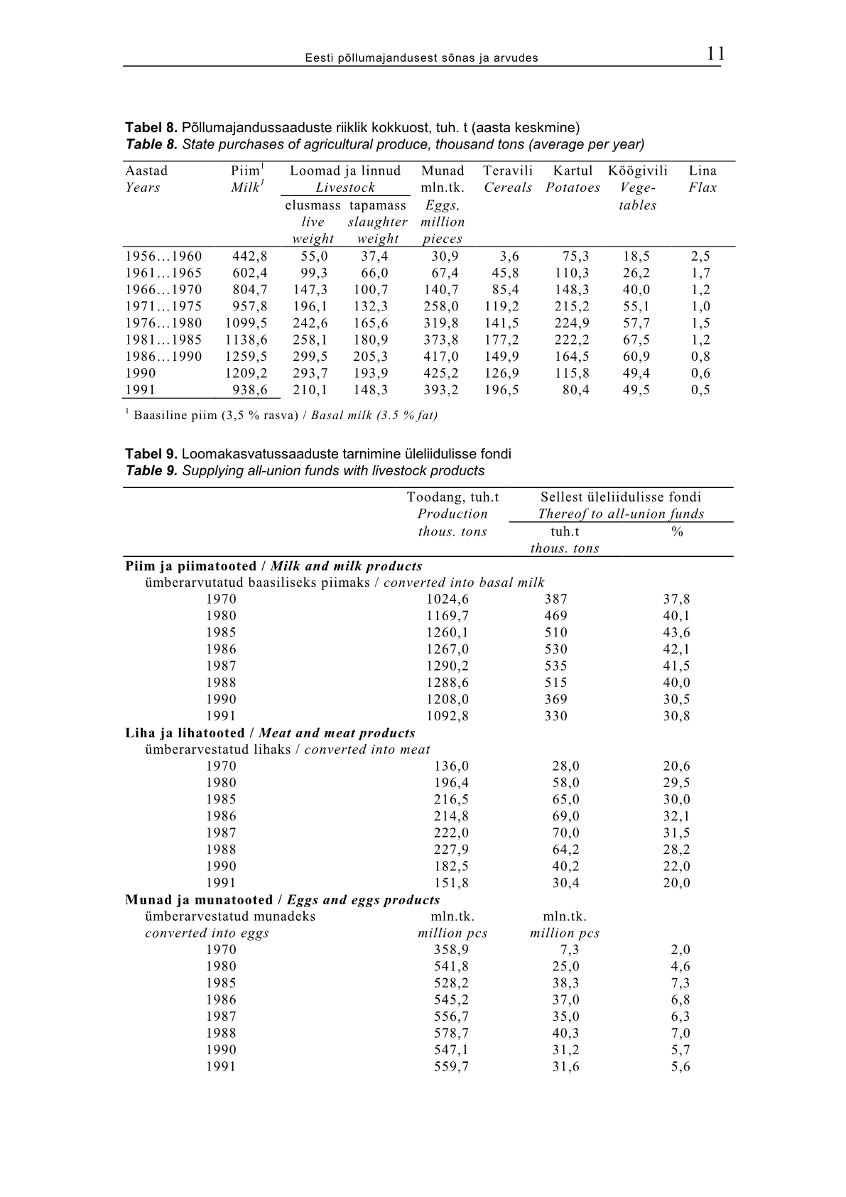 Toiduaineid toodeti suurtes kogustes ka üleliidulisse fondi ja veeti ENSV-st välja. Eriti just liha- ja piimatooteid.