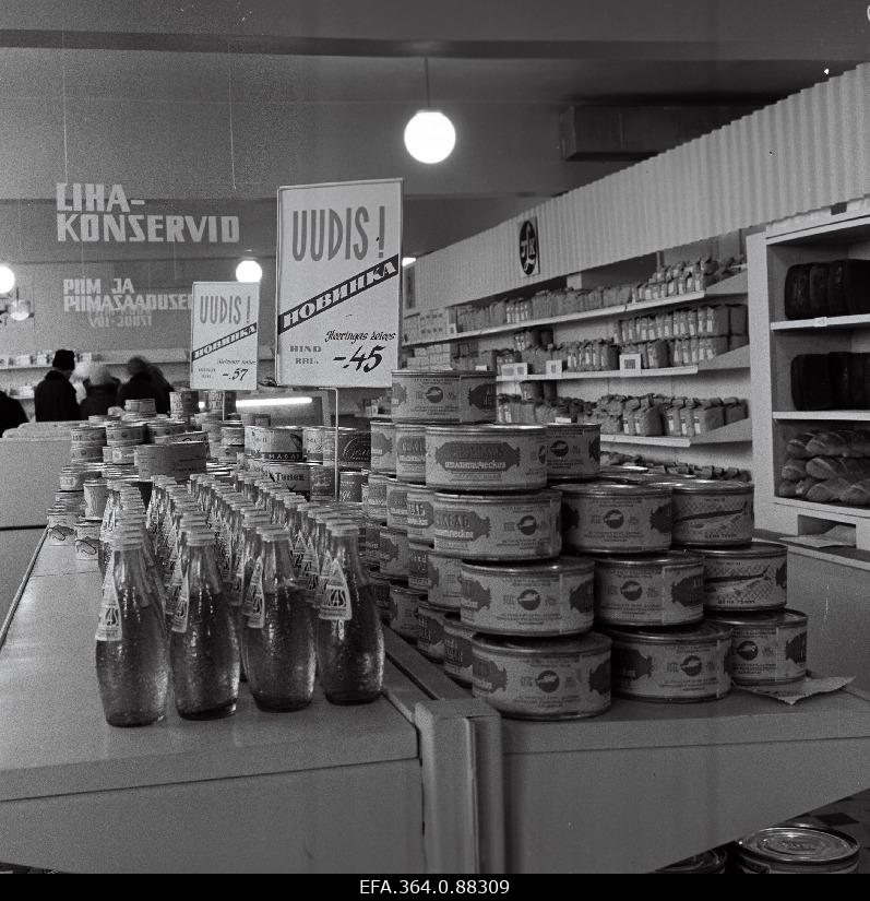 Võhma Tarbijate Kooperatiivi Suure-Jaani toidukaupade kaupluse sisevaade. Viljandi rajoon 01.1967 Paide Rajooni Tarbijate Kooperatiivi kaupluse "Pärnu" liha- ja lihasaaduste müügilett. Paide 01.1963 Väike-Maarja kolhoosi müügipunkti uued hinnad pärast 1990 hinnatõusu (konservidel on antud kilohinnad, mitte 250g konservikarpide hinnad)