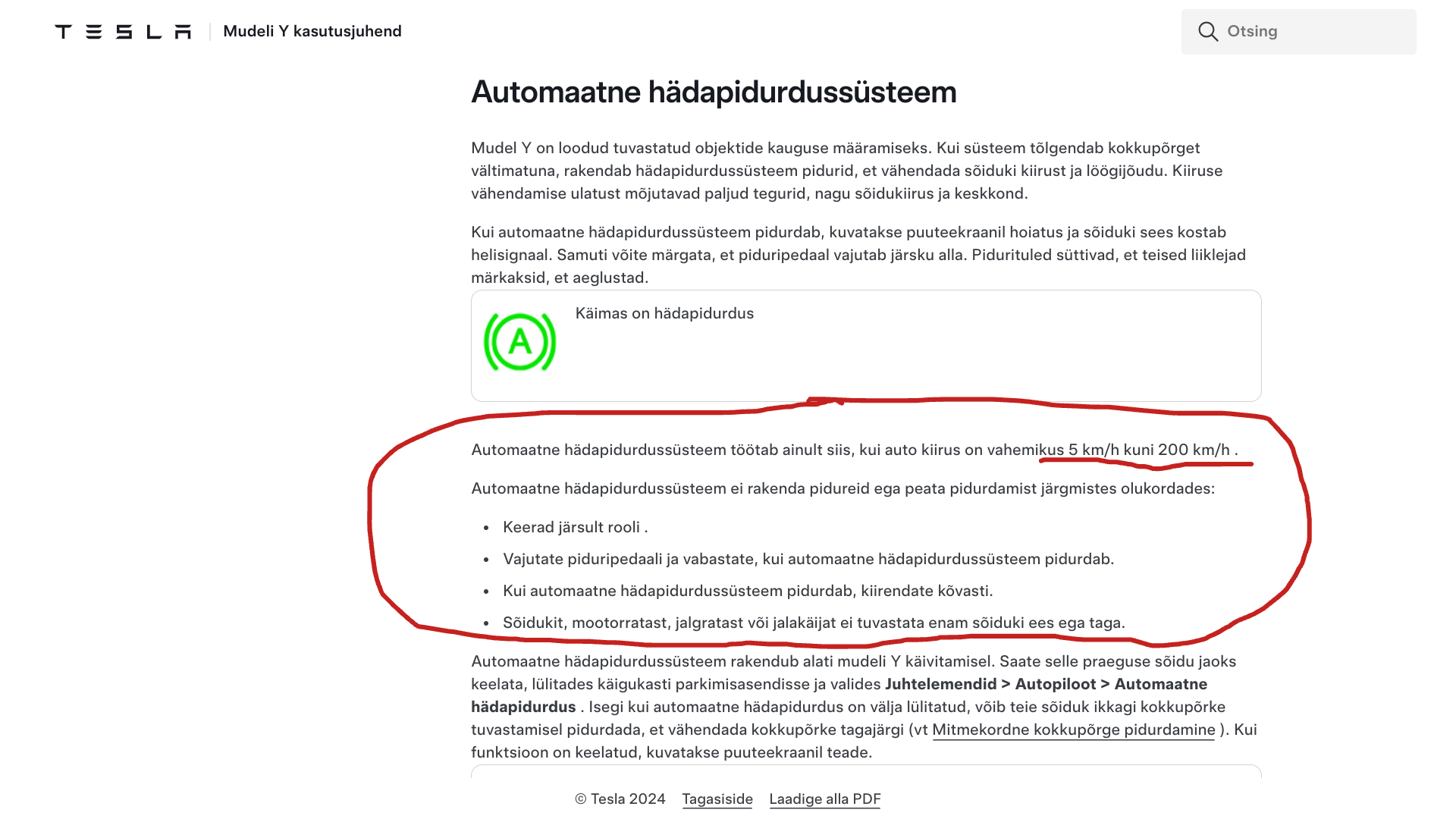 Oma ratsu tundmiseks, teadmaks et Tesla liikumisel kiirusega üle 200km/h lülituvad juhiabid välja: