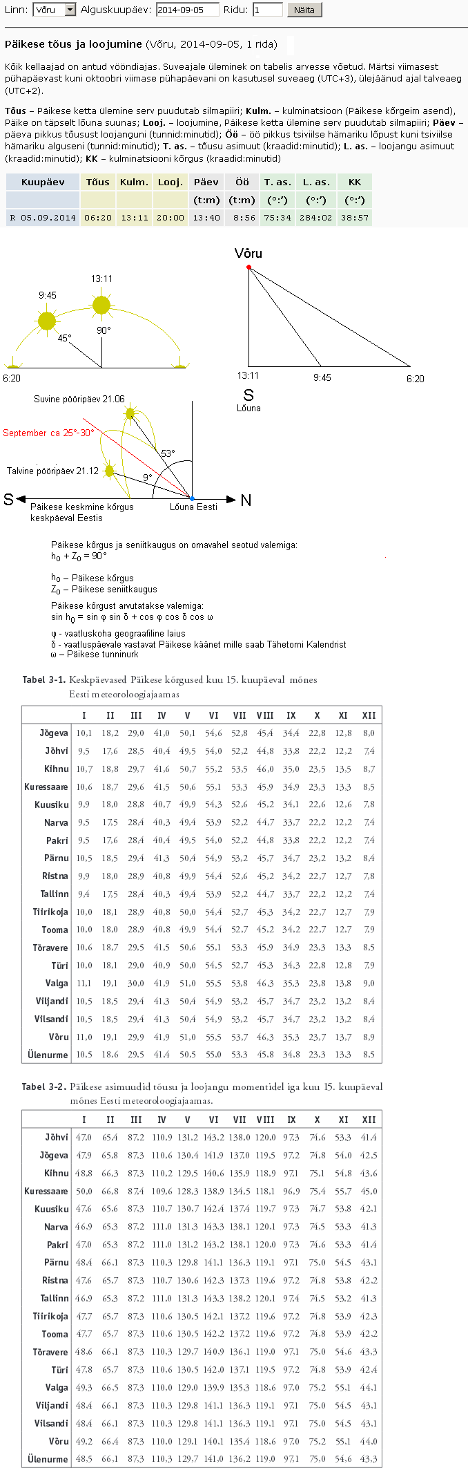 Muidu võib loomkatseid igaüks ise teha selle päikesega praegu. Minna kella 9 ajal välja, keerata ennast näoga lõnasse ja vaadata, kuhu päike paistab. kui kõrgelt ja mis nurga alt.