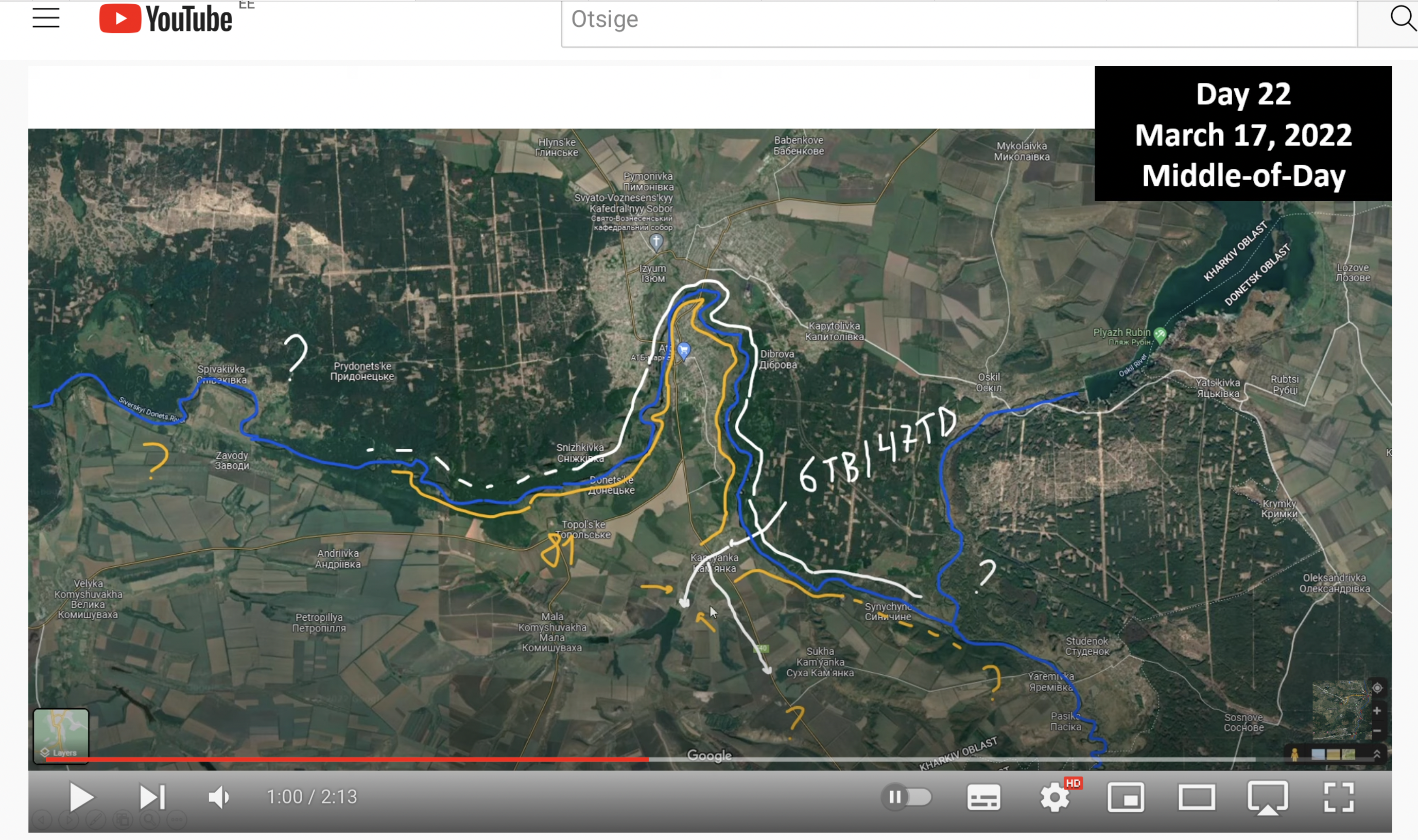 Kaart on kuvatõmmis 'War in Ukraine' kanali videost aadressil: https://youtu.be/uoz4oRHNTzY
