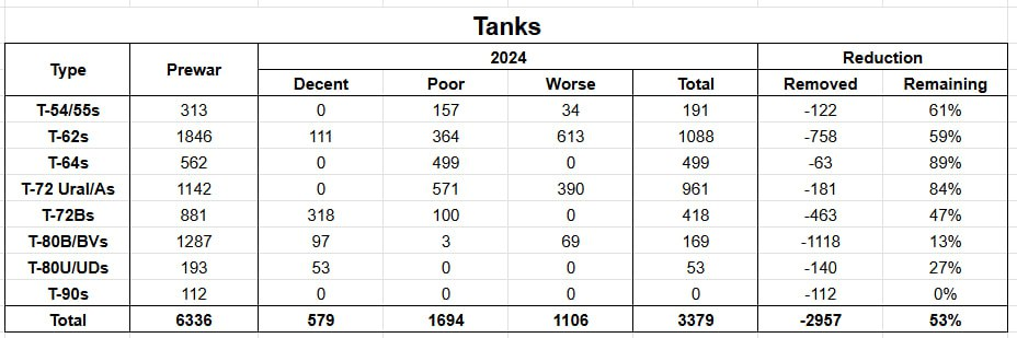 Rasketehnikat ei tarni neile minu teada keegi ning vajaminevates kogustes polegi seda kellelgi neile tarnida. Seda, et tummisem pool on läbi, on sel aastal erinevad allikad hinnanud (akf Fucs on ka sel teemal postitanud). Kuidas nad ilma soomustehnikata sõdima hakkavad, eks seda millalgi ülejärgmisel aastal näeb.