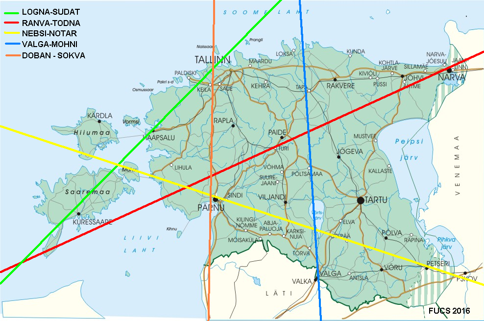 Seega üle Eesti on kaks koridori, mida mööda saavad lennata lennukid, mis võiksid olla saanud omale sisu ja laadungi VF-s. Need on NEBSI - NOTAR (Pihkvast Pärnu suunas) ja RANVA - TODNA (Narvast Sõrve sääre suunas).