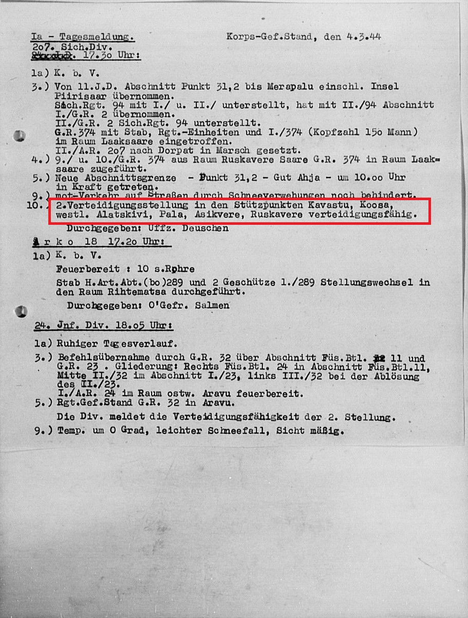 Kohalikelt võiks küsida veel, kas nad mäletavad, kus oli Kavastus sakslaste tugipunkt. Selle olemasolu kinnitab 04.03.1944 207.SD tegevusaruanne.