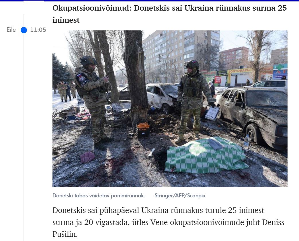 EnnR kirjutas: ↑22 Jaan, 2024 12:57 Donetski elektrivarustussüsteemi rünnati 22.01.2024 Ukraina droonidega