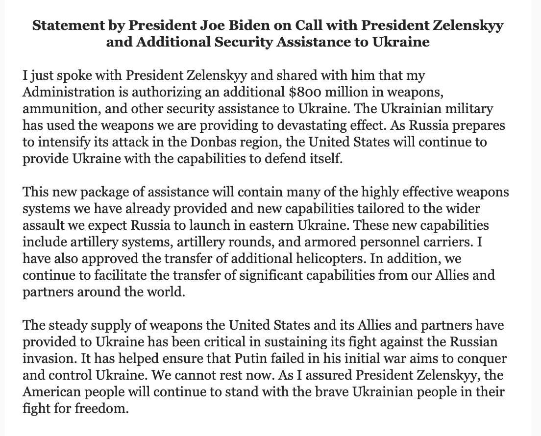Kui see nüüd tõele vastab, siis lubas Biden saata lisaks muule kraamile ka suurtükke, moona, soomustransportööre ja helikoptereid(?)