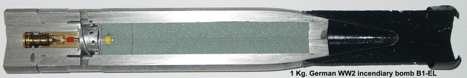 Saksa süütepomm.Lapikus otsas on sütik ja koonuselises otsas oli stabilisaator.Sisaldab termiiti. Võta kõne 112